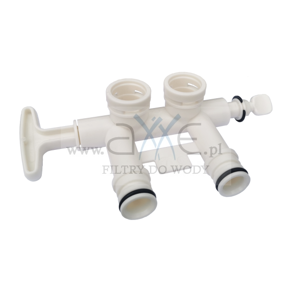 Zawór umożliwia szybkie, ręczne przełączenie wody uzdatnionej na "surową" w przypadku podlewania ogrodu, lub innych czynności, wymagających użycia wody twardej. Dzięki zwartej konstrukcji zabiera możliwie mało miejsca (w efekcie zmiękczacz nie odstaje tak bardzo od ściany) oraz w razie konieczności umożliwia całkowite odłączenie zmiękczacza i odsunięcie go w inne miejsce bez użycia jakichkolwiek narzędzi (np. w trakcie malowania). Co ważne! W tym czasie woda w domu jest normalnie dostępna - przepływa obejściem.