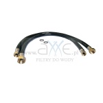 Zestaw dwóch elastycznych węży przyłączeniowych ECOWATER 100cm zakończonych z obydwu stron nakrętkami z hydraulicznym gwintem wewnętrznym 3/4" i 1" to doskonałe ułatwienie montażu zmiękczaczy wody produkowanych przez ECOWATER System, ale również wszystkich innych zmiękczaczy wody i nie tylko. Dzięki zastosowaniu węży, a nie twardych rur przyłączeniowych, zyskujemy dużą mobilność urządzenia. Montaż filtra do wody twardej dzięki takiemu podłączeniu jest dużo szybszy, łatwiejszy i często również tańszy. W razie potrzeby możemy zmiękczacz przesuwać, podnosić chociażby po to aby umyć pod nim podłogę. Węże przyłączeniowe są dopuszczone do kontaktu z woda pitną. Produkt zrobiony jest z nylonowego włókna zatopionego w czarnej otulinie, jego końcówki przyłączeniowe są wykonane z mosiądzu i przystosowane do połączenia z by‐passem zmiękczaczy DN25 dla głowic ECOWATER 3/4". Każdy wąż został wyposażony w gumową uszczelkę.