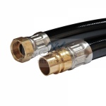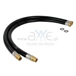 Zestaw dwóch elastycznych węży przyłączeniowych ECOWATER 120cm zakończonych z jednej strony gwintem wewnętrznym (nakrętka) 1" a z drugiej opatentowanym przyłączem klipsowym DN 32 to doskonałe ułatwienie montażu zmiękczaczy wody i innych systemów filtracyjnych, również odżelaziaczy produkowanych przez ECOWATER System. Dzięki zastosowaniu węży, a nie twardych rur przyłączeniowych, zyskujemy dużą mobilność urządzenia. Montaż filtra do wody twardej dzięki takiemu podłączeniu jest dużo szybszy, łatwiejszy i często również tańszy. W razie potrzeby możemy zmiękczacz przesuwać, podnosić chociażby po to aby umyć pod nim podłogę. Węże przyłączeniowe są dopuszczone do kontaktu z woda pitną. Produkt zrobiony jest z nylonowego włókna zatopionego w czarnej otulinie, jego końcówki przyłączeniowe są wykonane z mosiądzu i przystosowane do połączenia z by‐passem zmiękczaczy DN32 dla głowic ECOWAER 1" i Double Disk. Każdy wąż został wyposażony w gumową uszczelkę.